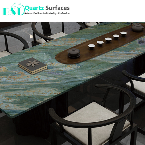بلاط حجر متكلس حديث فاخر أخضر وذهبي ألواح حجر متكلس للجدران ولطاولات الطعام وحوض الجدران